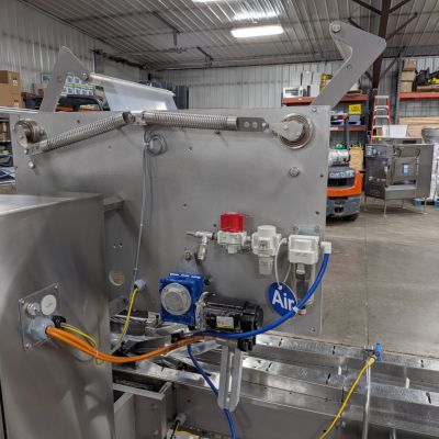 Built for high-capacity production lines, this Pack 201 features an exceptionally long 204″ lugged infeed system that provides superior product staging and handling capabilities. Operating at OEM-rated speeds up to 150 packages per minute, the machine maintains excellent package quality while maximizing throughput. Configured for left-to-right product flow, this wrapper integrates seamlessly into most production layouts, offering the flexibility modern facilities demand.