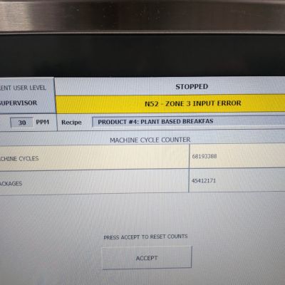 This turnkey packaging solution features state-of-the-art Beckhoff controller technology coupled with Bosch Rexroth servo drives for exceptional precision and repeatability. The system includes a Markem SmartDate X60 printer for date coding and product identification, plus a 39″ long by 9.25″ wide discharge conveyor for efficient downstream handling. Operating on 208-240 volt, 3-phase, 60 Hz power at 20 amps, this machine installs easily in most production facilities.