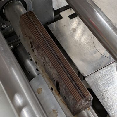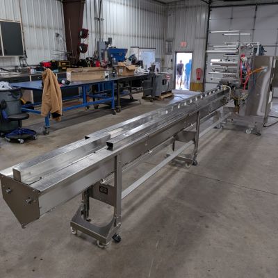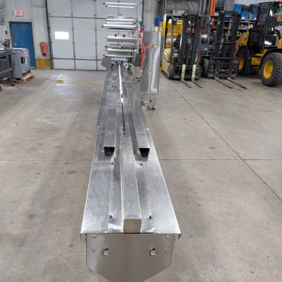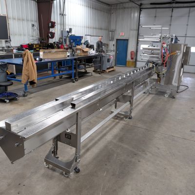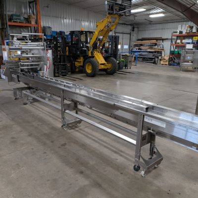 - Infeed System: Approximately 204″ long lugged infeed